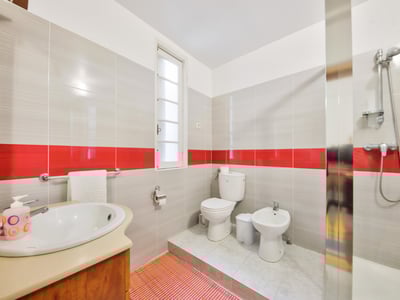 Este quarto apresenta uma decoração tradicional em vários tons, assim como televisão por cabo e mobiliário em madeira. A casa de banho dispõe de um chuveiro. Pisos superiores acessíveis apenas por escadas.
